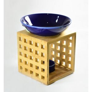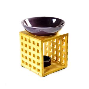 Fair Trade Duftlampe aus Holz ca. 11,5 x11,5 x 15 cm inkl. Keramikschale und Teelichthalter